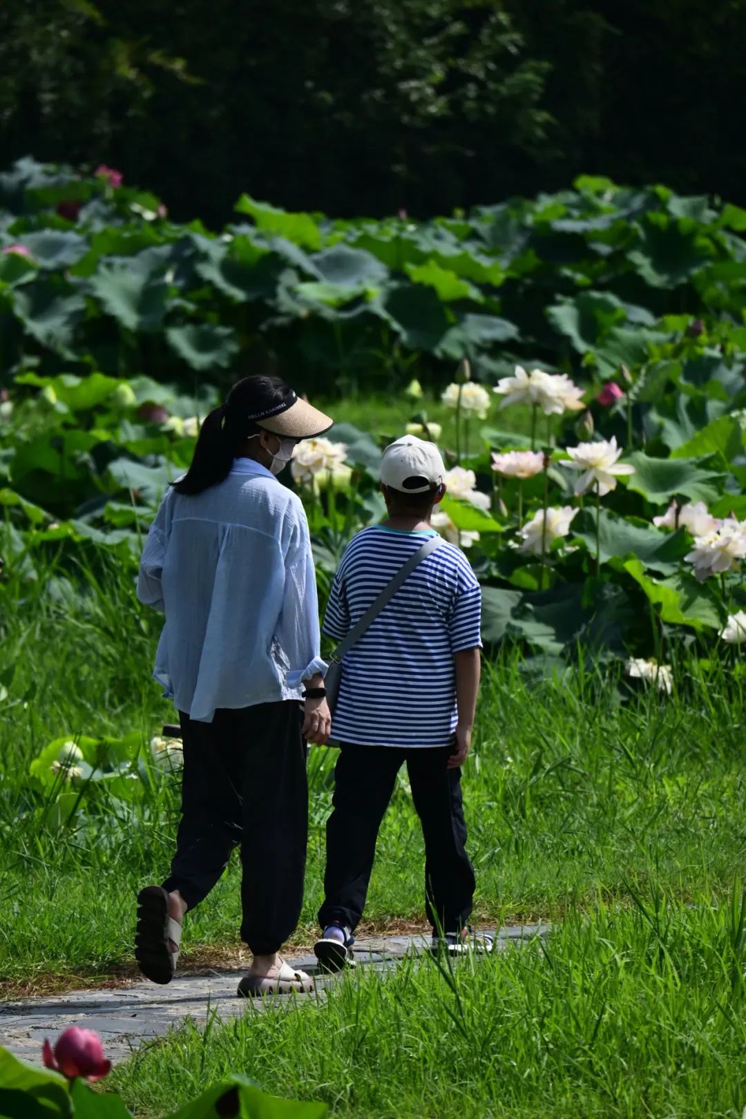 行程的最后來(lái)到了廣闊的荷花池。游船駛?cè)胍黄叹G與藍(lán)天交織的世界,荷葉田田,如傘如蓋;荷花亭亭玉立,或含苞待放,或嬌艷盛開(kāi),在微風(fēng)中搖曳生姿。員工們陶醉于“接天蓮葉無(wú)窮碧,映日荷花別樣紅”的詩(shī)意畫(huà)卷中,用鏡頭記錄下這令人心曠神怡的美景。